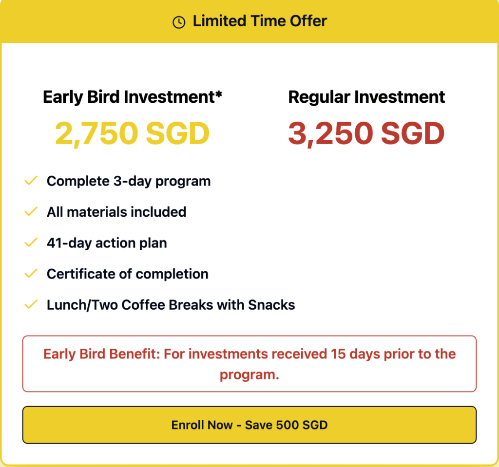 Every session is personally conducted by Mr. Shiv Khera. The focus is not just on theory, but on practical, easy-to-implement strategies that deliver immediate results through a 41-day action plan. You also gain direct access to proven methodologies that have transformed over 100,000 professionals worldwide.